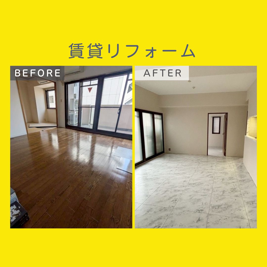 2025.10.24賃貸リフォーム施工事例|クロス貼替・大理石風フロアで高級感アップ退去後の原状回復を兼ねて「空室期間を短くする部屋づくり」をテーマにリフォーム。古く感じられていた壁紙 ... -