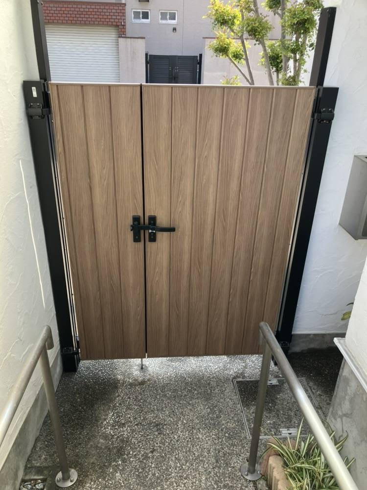 今回は、耐久性・耐候性に優れたアルミ製門扉へ交換させていただきました。アルミ製はサビや腐食に強く、長期間にわたって美観を保ちやすいのが特長です。