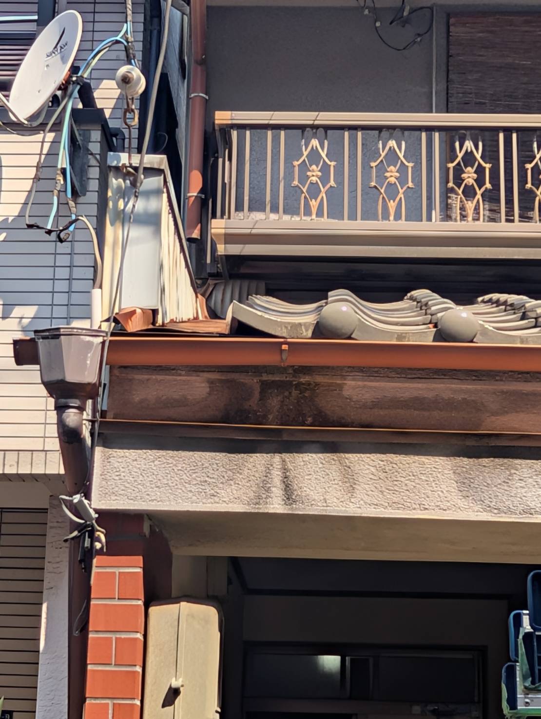 阿倍野区にて、強風による雨樋破損の修理工事を行いました。